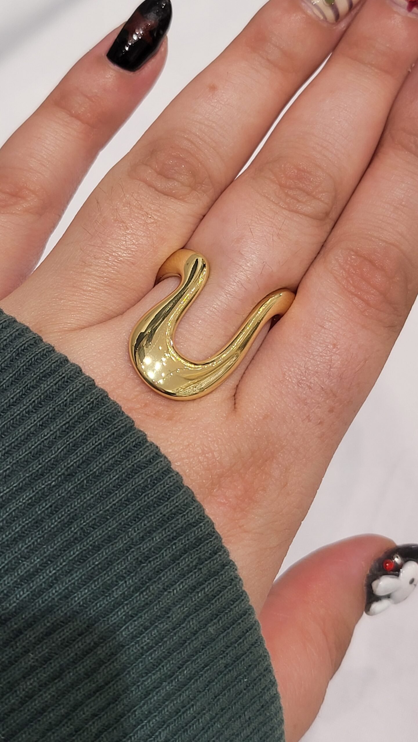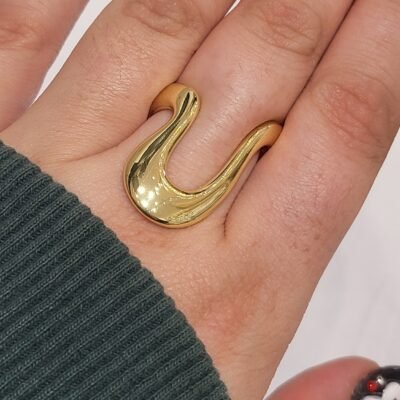 Estructura Abierta: Es un modelo de tipo “open ring” o anillo abierto. Esto no solo facilita el ajuste a diferentes tamaños de dedo, sino que aporta un aire moderno y minimalista.