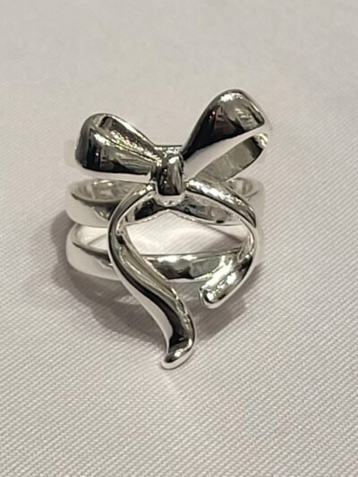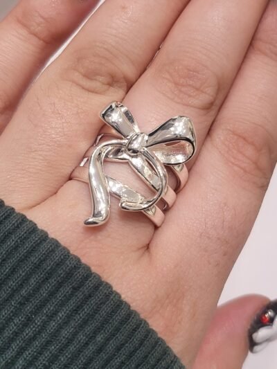 Forma: Representa un lazo o moño de gran tamaño que parece estar atado de forma natural, con caídas fluidas que cubren parte del dedo.