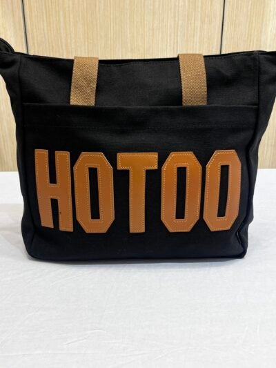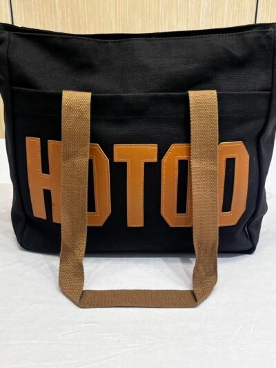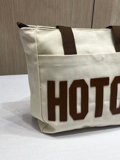 Bolso de lona con tela hipermiabre por dentro y decorados con eco cuero
