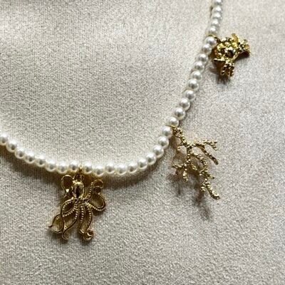 Collar de perla con dijes de dorado