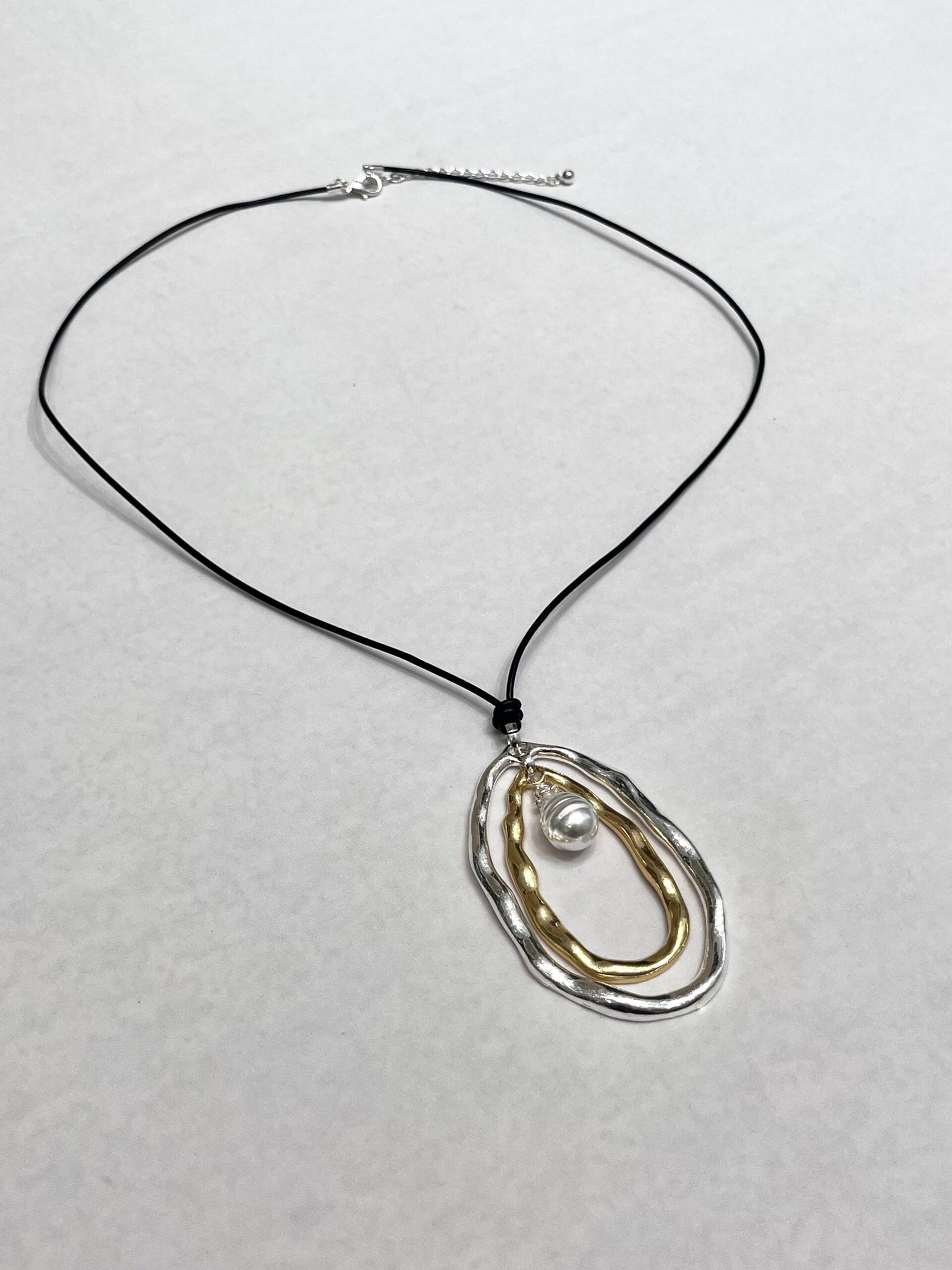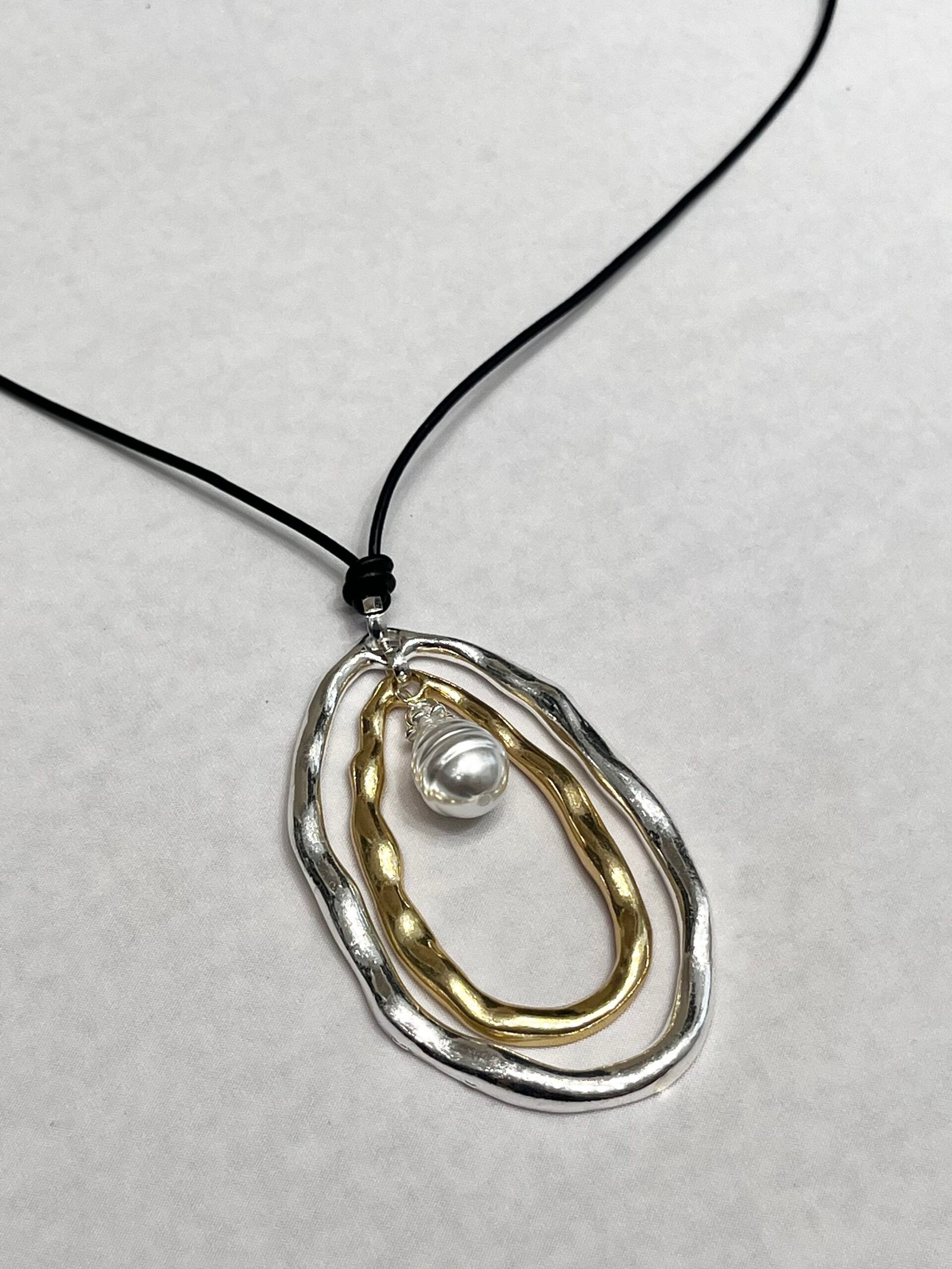 collar de cordon con dije plateado y dorado.