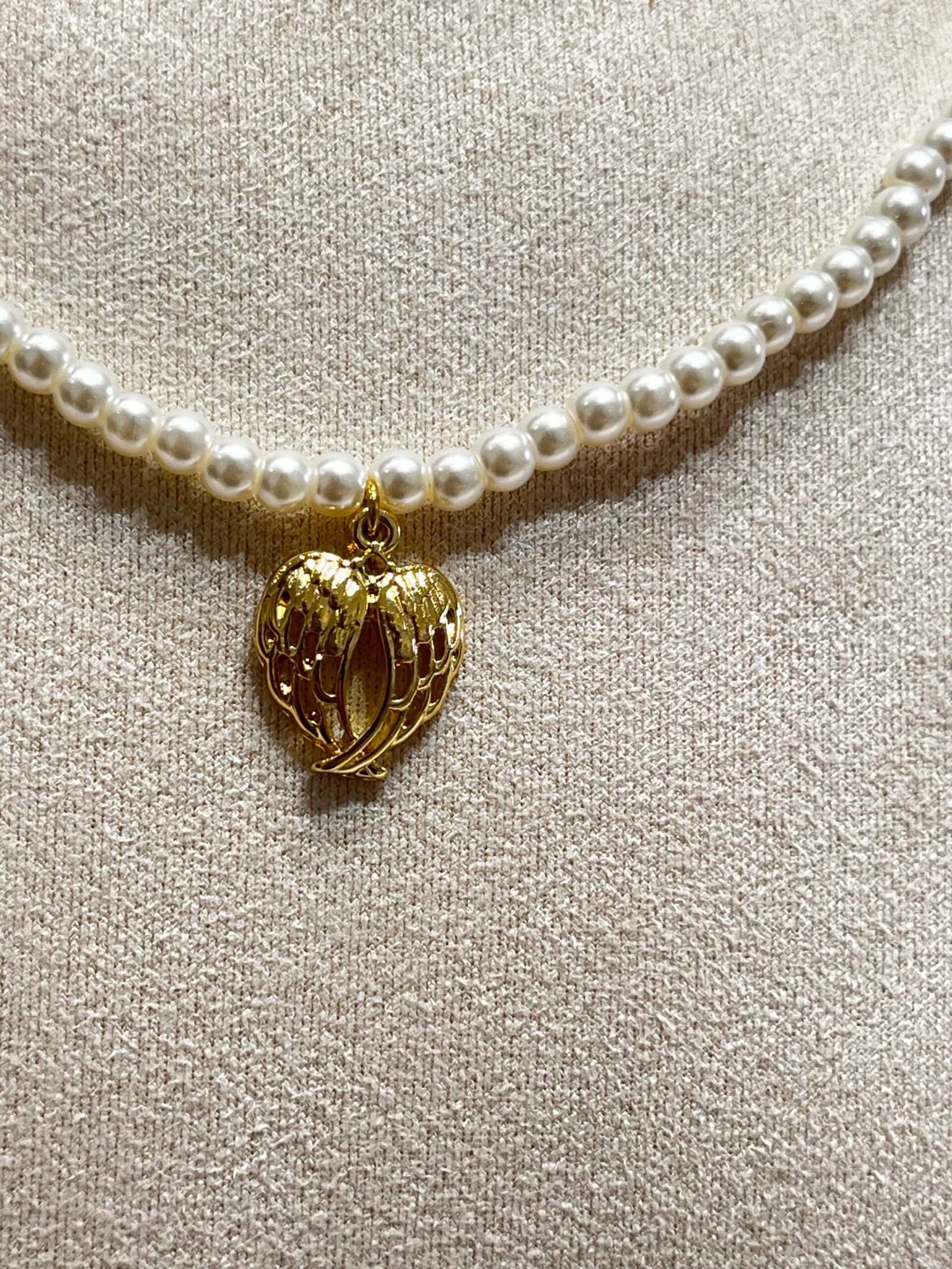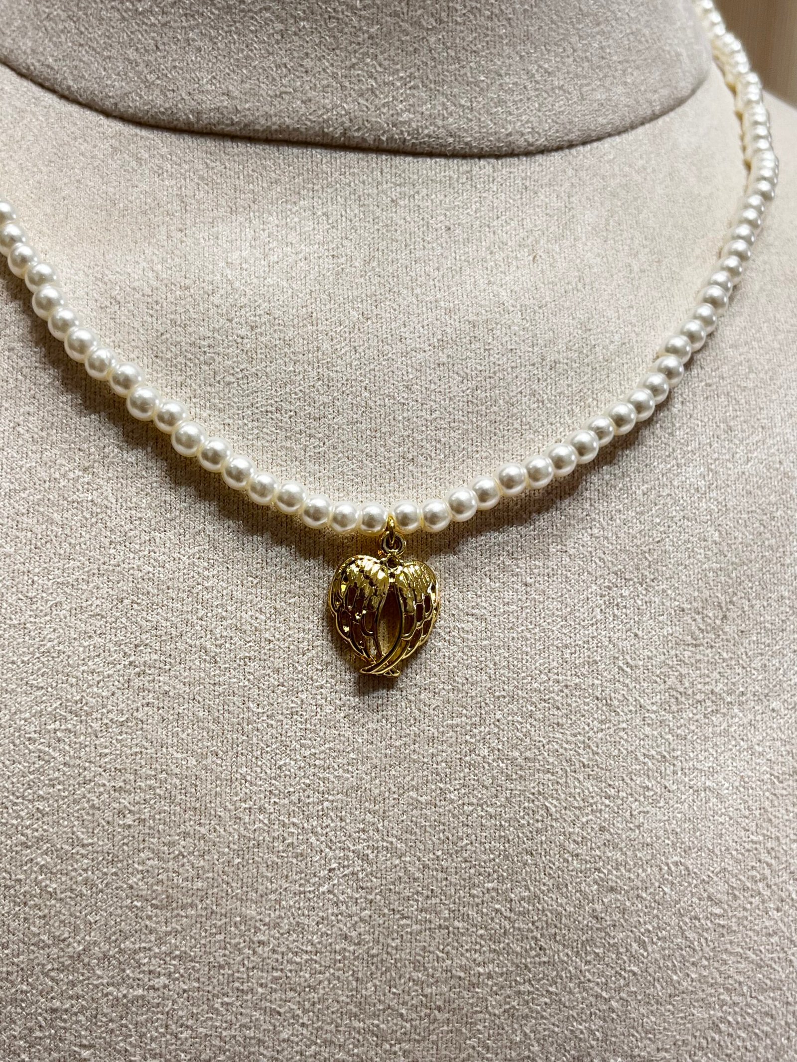 Collar de perlas y Dije de alas dorados ( MATERIAL FALTASIA )