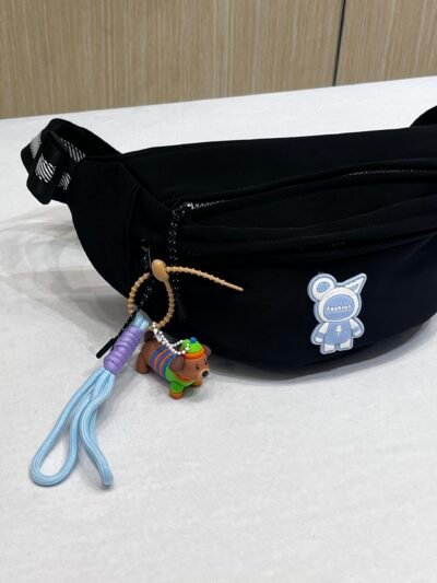 Correa regulabre con llavero de plastico de un perro salchica con correa