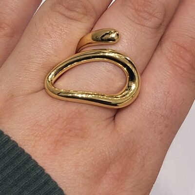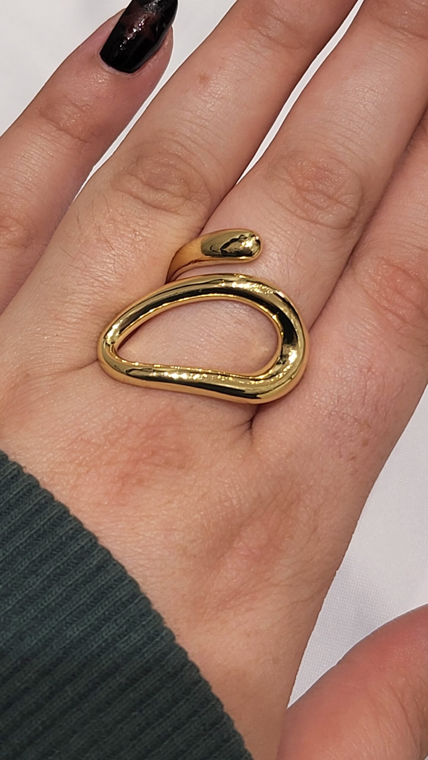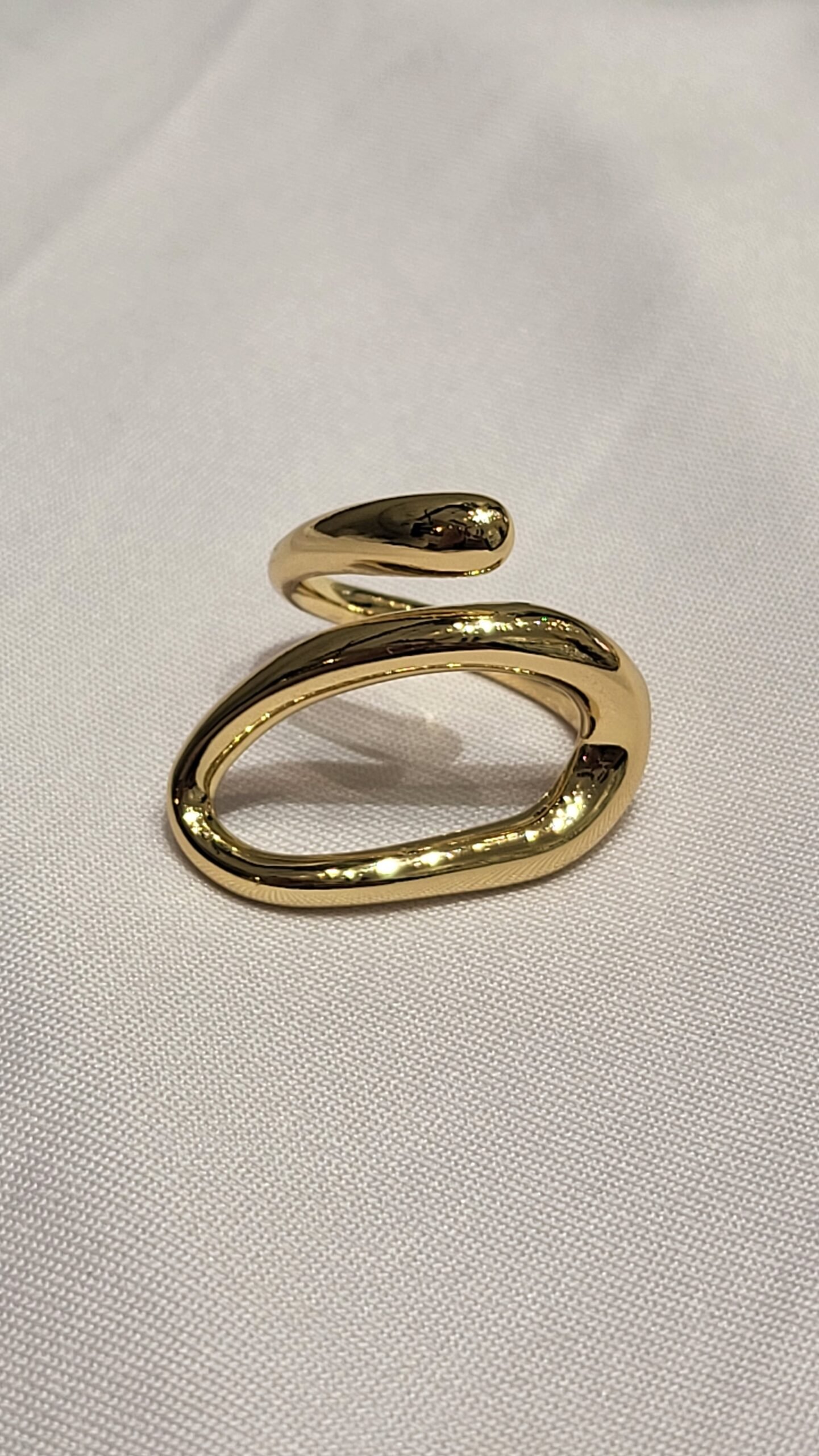 Forma de Serpiente Abstracta: El anillo presenta un diseño envolvente de una sola línea continua que evoca la sinuosidad de una serpiente o una gota de metal líquido en movimiento.