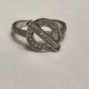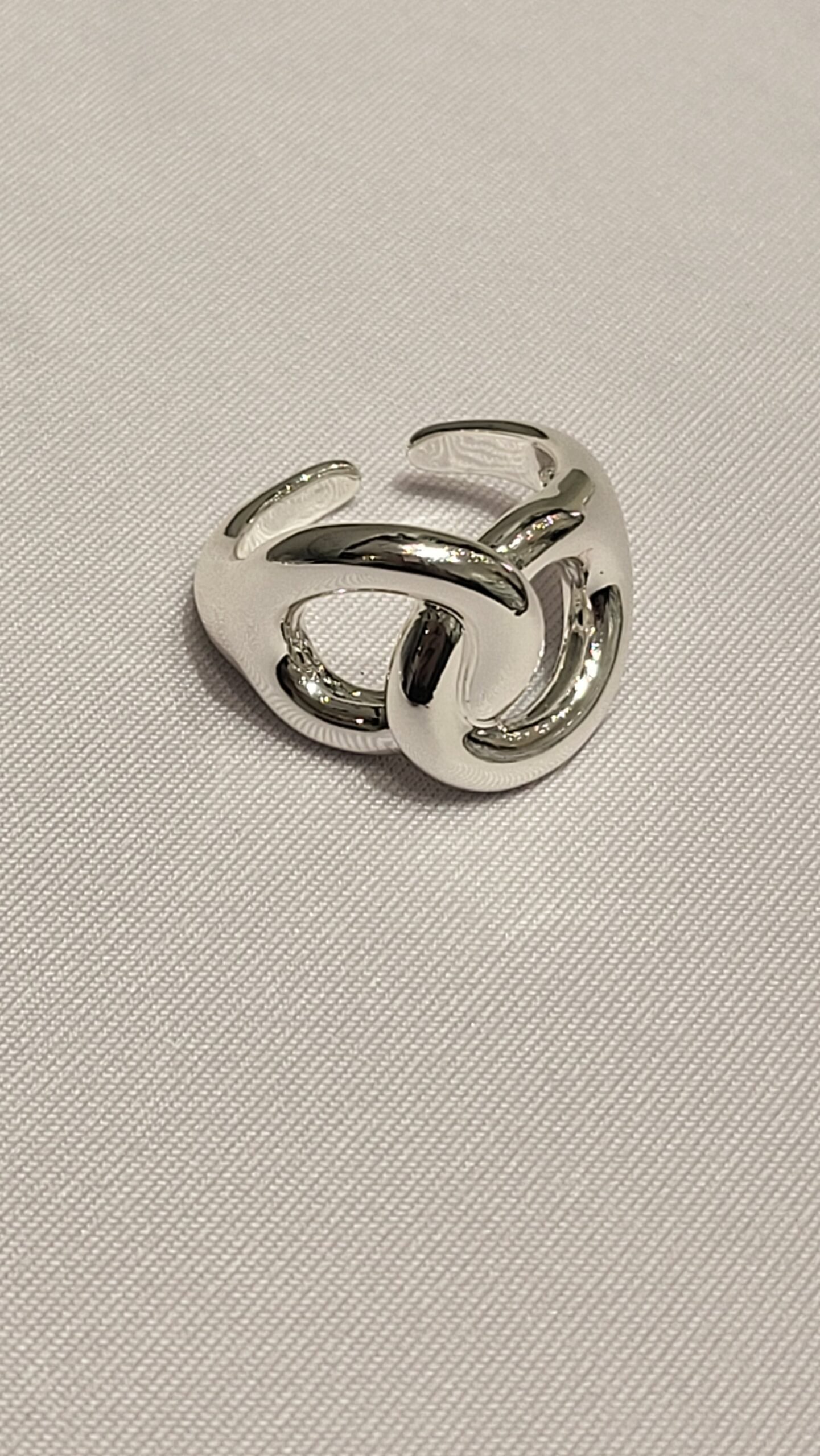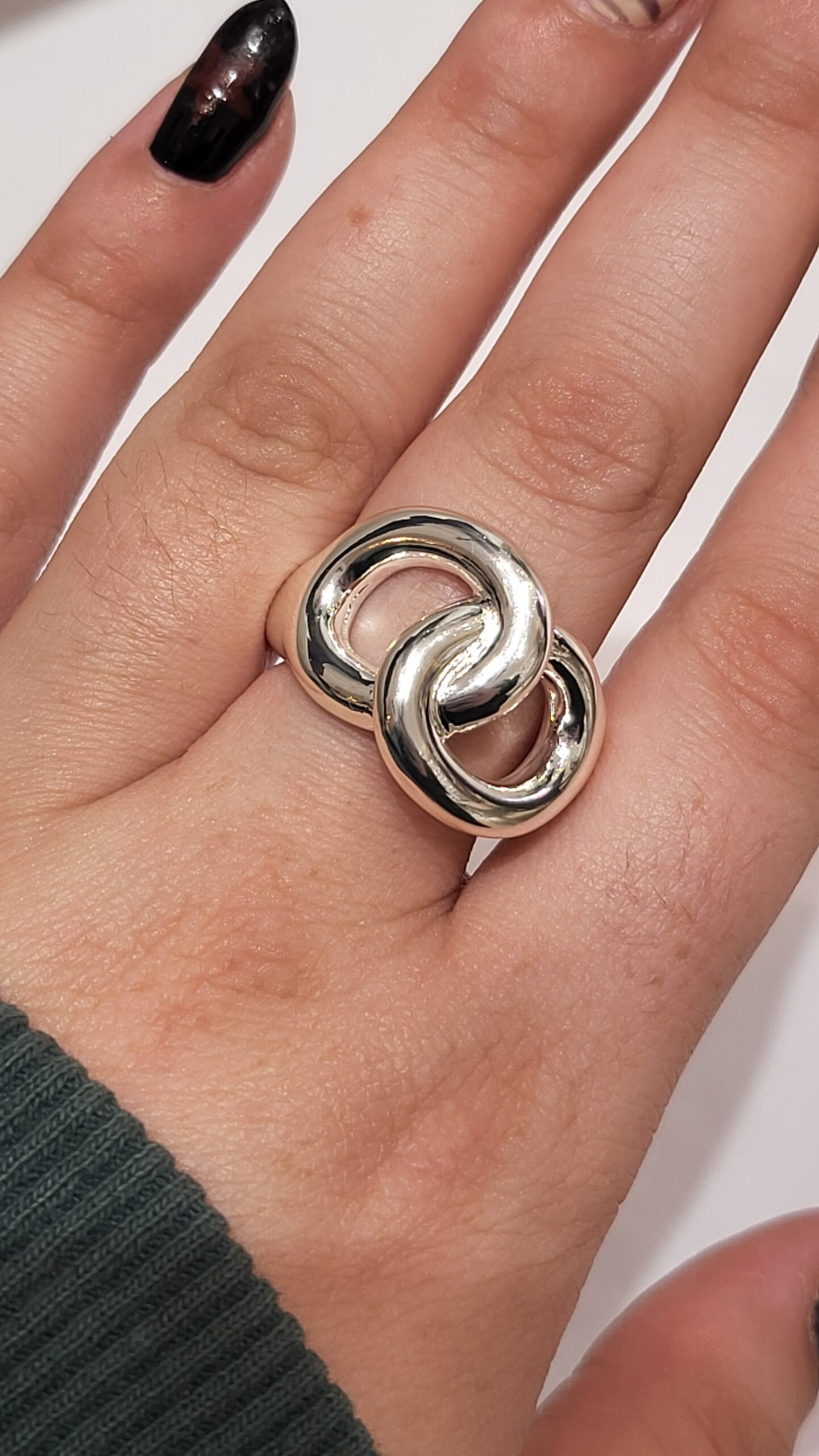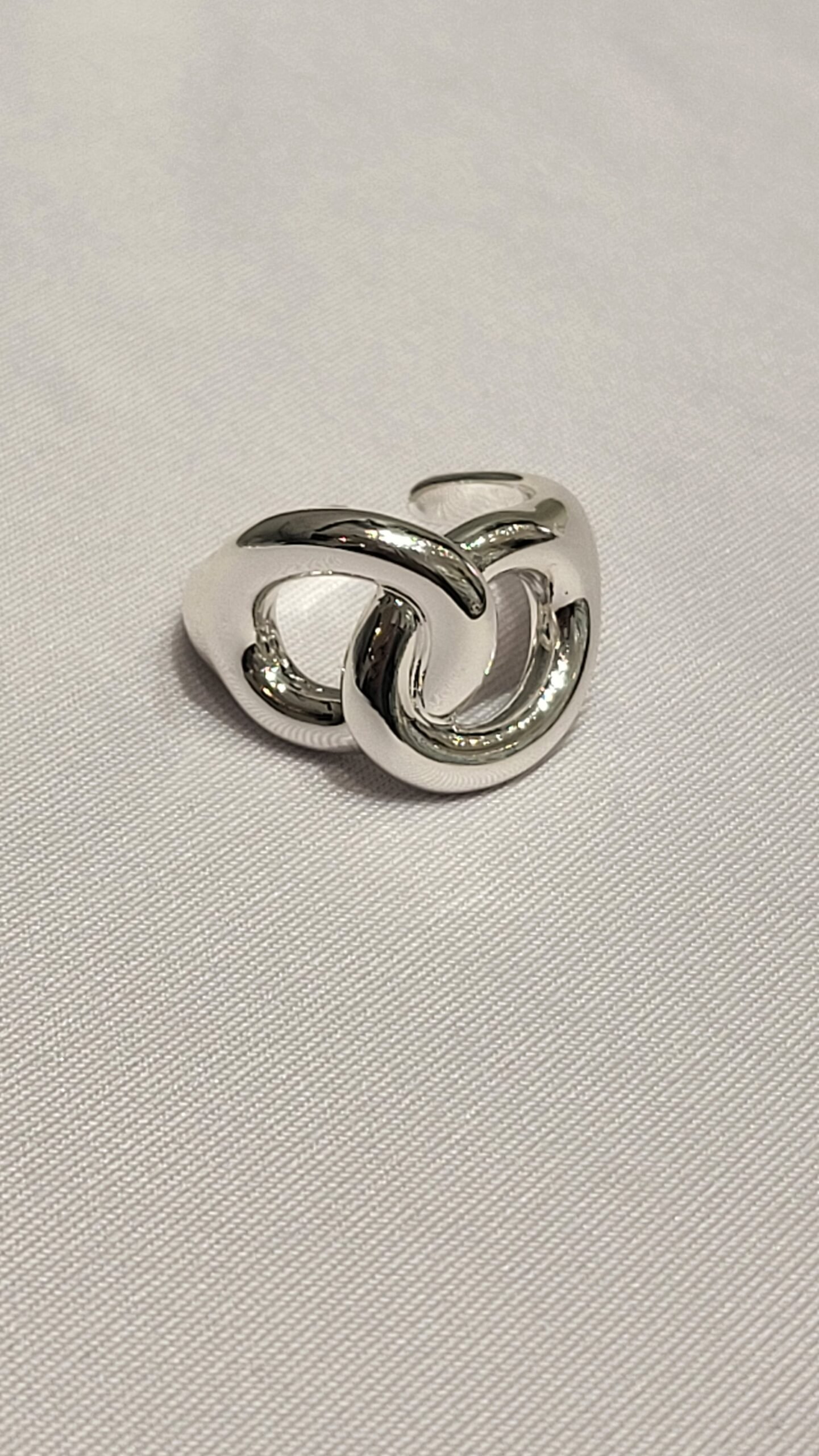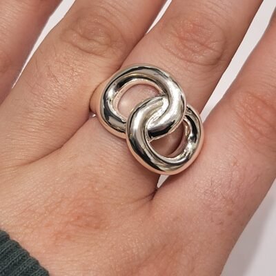 Estructura: Se trata de un anillo de diseño entrelazado que emula el eslabón de una cadena gruesa o un nudo infinito. Su forma orgánica y fluida le otorga un aire artístico.