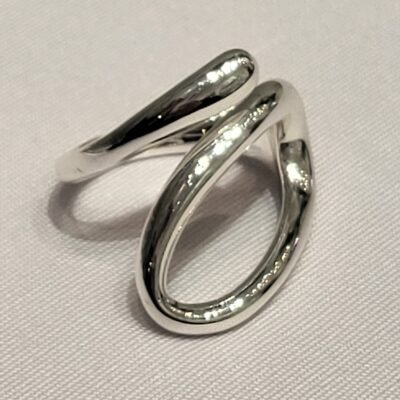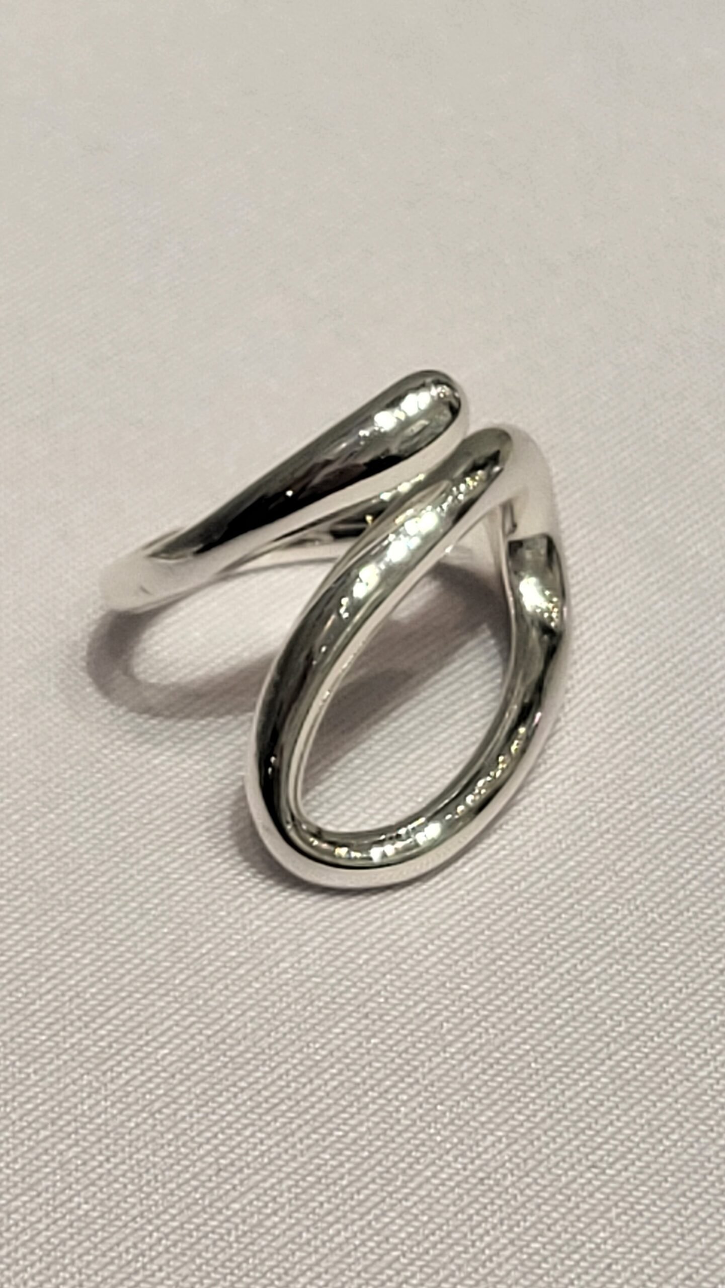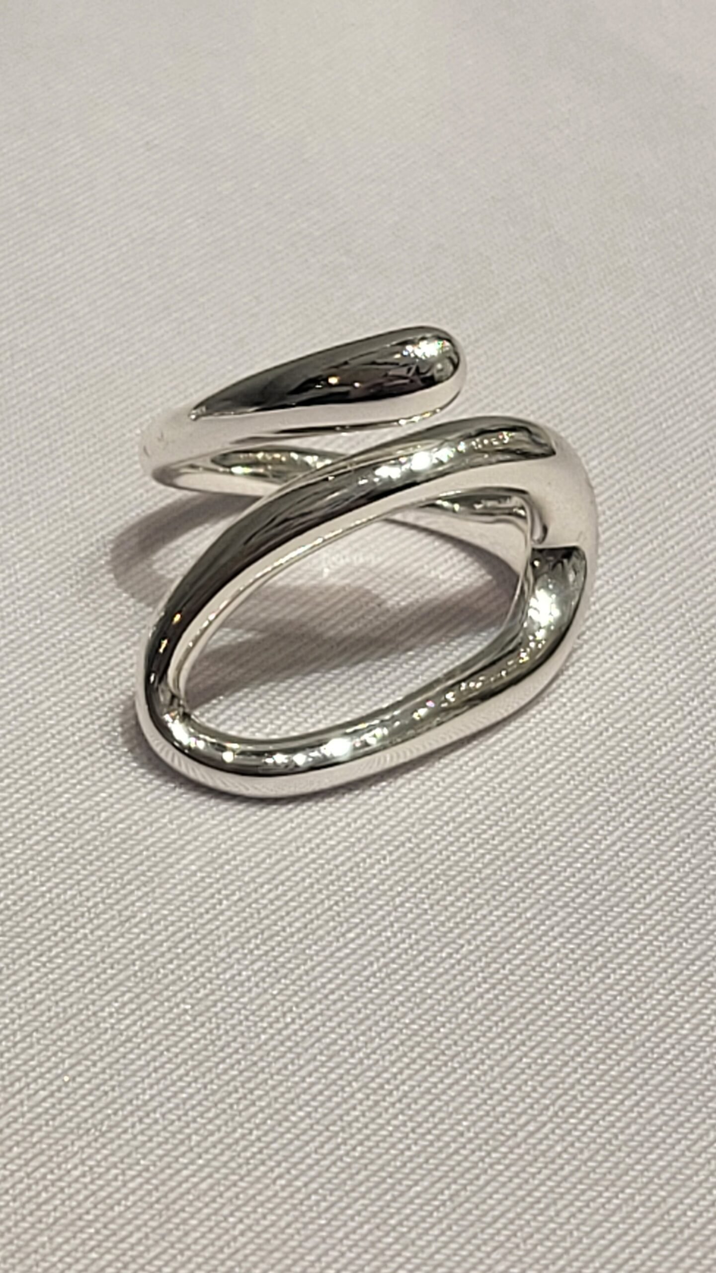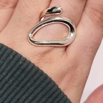 Forma de Serpiente Abstracta: El anillo presenta un diseño envolvente de una sola línea continua que evoca la sinuosidad de una serpiente o una gota de metal líquido en movimiento.