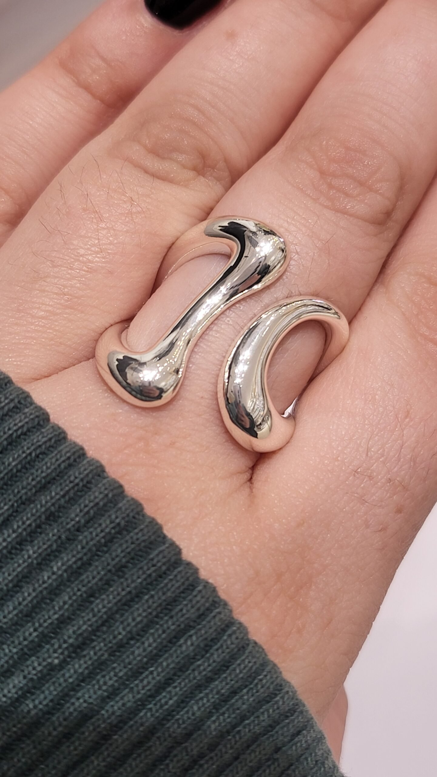 Estructura “Open Band” (Abierta): No es un círculo cerrado; las puntas se curvan de forma independiente, lo que le da una apariencia dinámica y envolvente en el dedo.