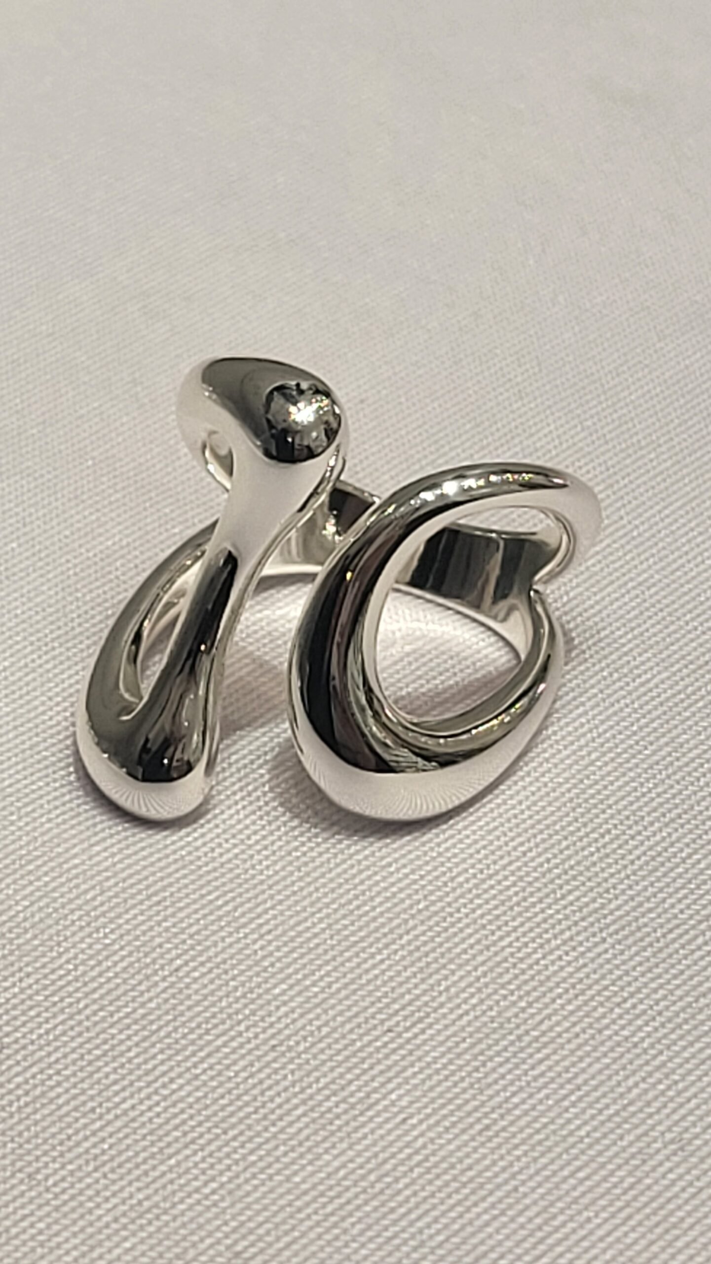 Diseño Orgánico: El anillo imita formas fluidas de la naturaleza, similares a gotas de metal líquido o formas anatómicas. Se aleja de las líneas rectas y la simetría perfecta.