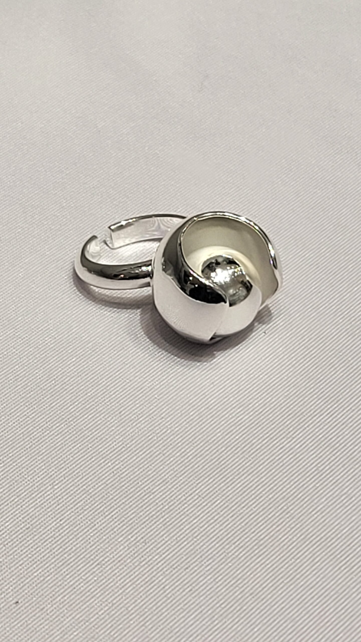 Detalle Interno: En el interior de la cavidad se encuentra una pequeña esfera sólida y brillante, creando un efecto de “perla metálica” protegida por su estructura externa.