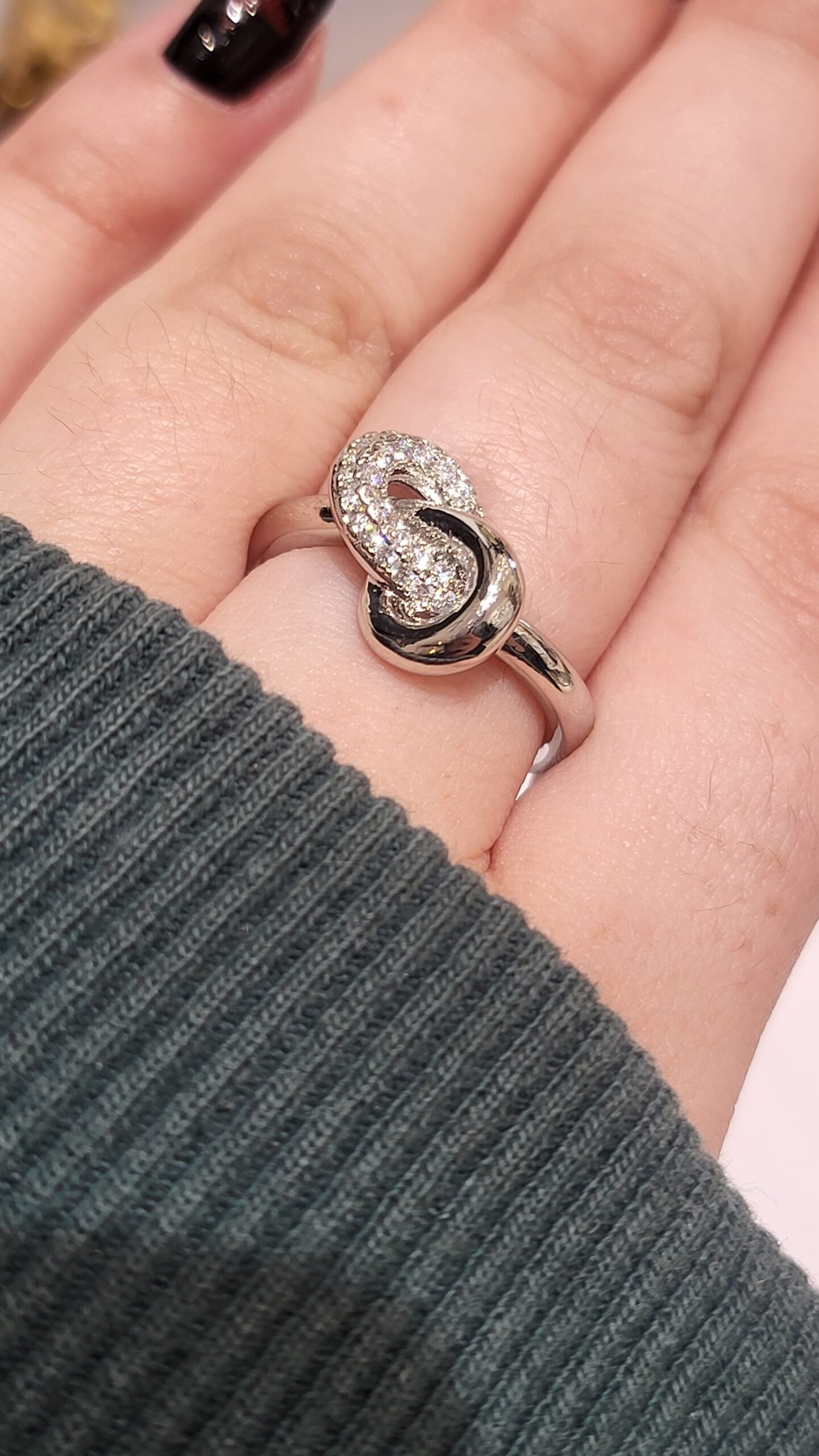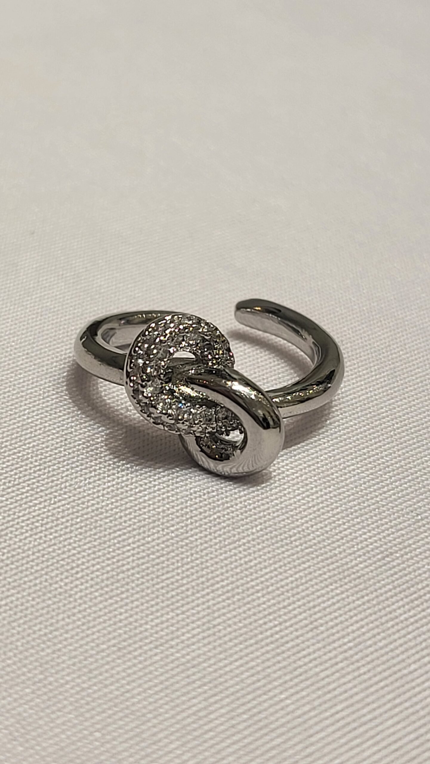 Estructura Abierta: La banda del anillo es de tipo “open shank” (abierta en la parte posterior), lo que le confiere un aire moderno y facilita un ajuste más flexible al dedo.