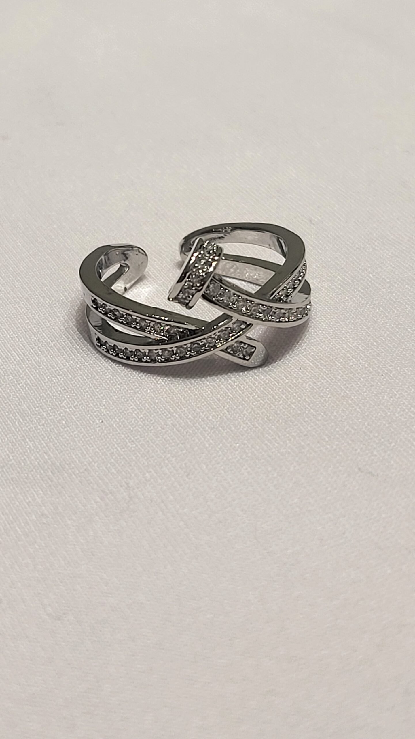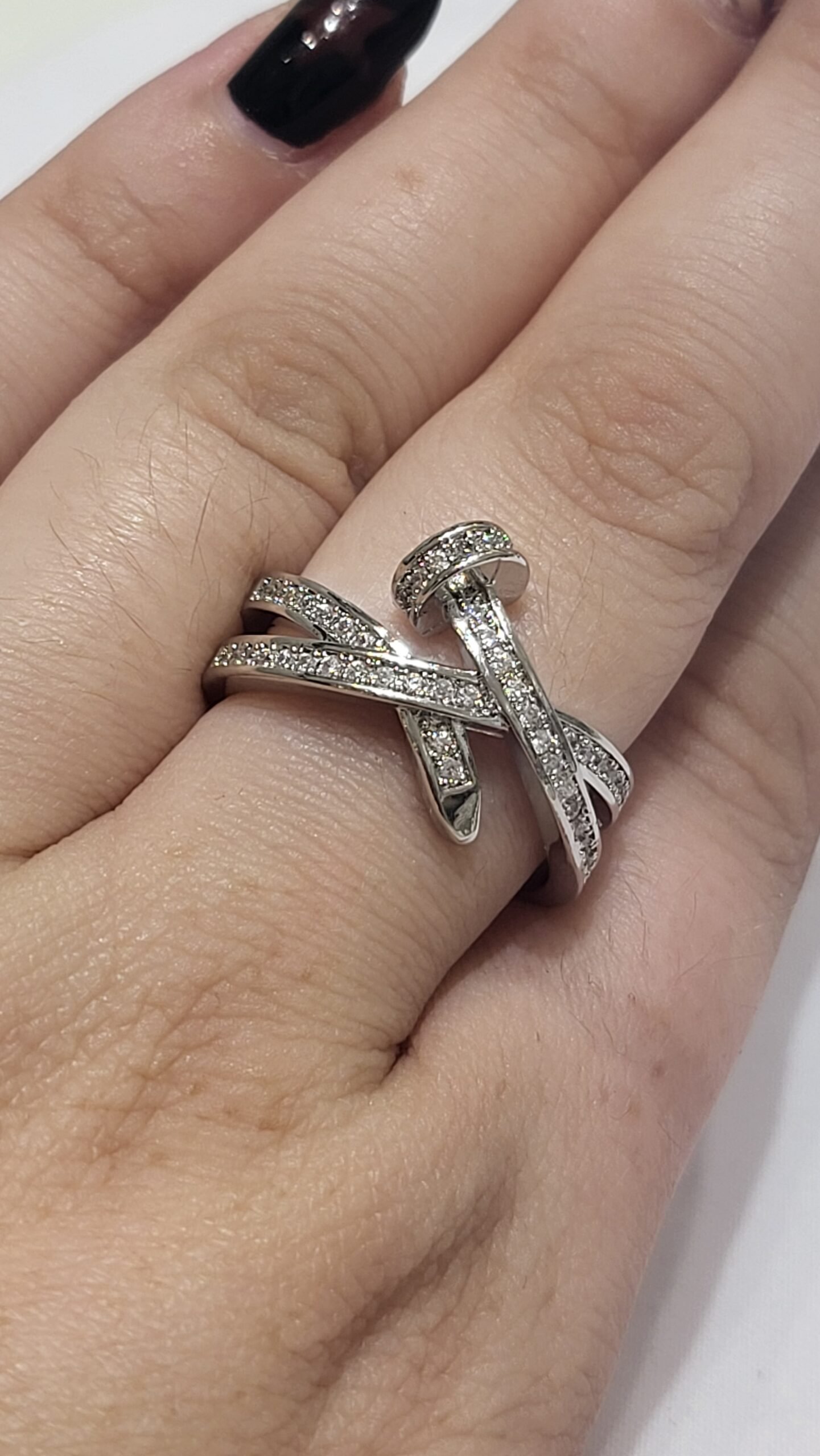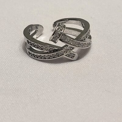 Estructura Cruzada: El cuerpo del anillo se divide en bandas que se entrelazan, creando un efecto visual de múltiples niveles y mayor volumen sobre la mano.
